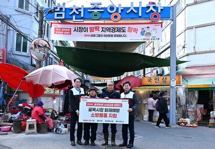 또한 전통시장 화재 사고 예방을 위한 지원도 함께 진행됐다. BNK금융그룹은 노후화된 시장 점포의 안전 관리에 도움을 주기 위해 소화기 100개, 콘센트용 소화패치 200개 등 화재 예방 물품을 상인들에게 전달하며 보다 안전한 전통시장 환경 조성에 힘을 보탰다.