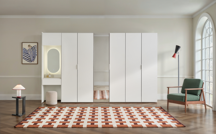 이중 에딧은 5㎜ 단위까지 조정할 수 있는 맞춤 제작 시스템을 통해 수납 효율을 극대화한 붙박이장이다. 사용자의 라이프스타일에 따라 내부 구성을 자유롭게 편집할 수 있는 모듈형 구조를 채택했다. 색상은 어떤 인테리어에도 자연스럽게 어울리는 화이트와 차분하면서도 고급스러운 분위기의 그레이지(회색+베이지) 두 가지로 구성됐다. 여기에 스톤 질감을 적용해 인테리어 요소로서의 역할도 강화했다.