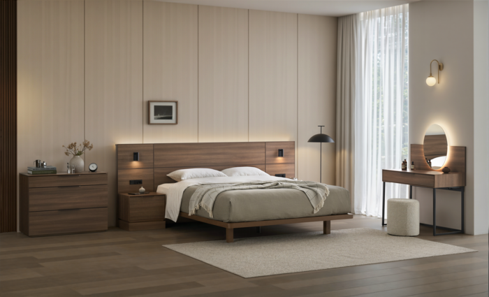 스와니에는 집에서도 호텔 객실 같은 편안함과 분위기를 누릴 수 있는 호텔형 침대다. 스와니에 침대는 호텔 침실에서 느낄 수 있는 안정감 있는 구조와 절제된 디자인을 구현했다. 프레임 디테일에 해외 명품 가구에 주로 사용되는 알루미늄 소재를 적용해 호텔 가구 특유의 깔끔하고, 세련된 이미지를 조성했다. 헤드보드는 물론, 양쪽 패널의 상부까지 끊김 없는 간접 조명을 더해 은은하고, 차분한 빛으로 취침 전 휴식을 돕고, 호텔 객실과 같은 아늑한 수면 환경을 완성한다. 색상은 아이보리와 딥 브라운 두 가지로 구성돼 밝고, 편안한 분위기부터 차분하고, 고급스러운 무드까지 폭넓게 아우른다.