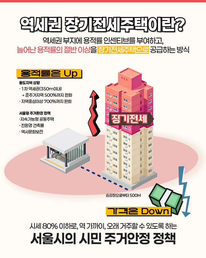 [대한경제=임성엽 기자]서울시가 역세권 장기전세주택의 수익성 개선의 핵심요인 ‘기준용적률’을 최대 30%포인트(p)까지 끌어올려 사업성을 개선한다. 이를 통해 서울 전역 122개소에서 총 11만7000세대 규모 역세권 주택 공급을 본격화한다는 구상이다.