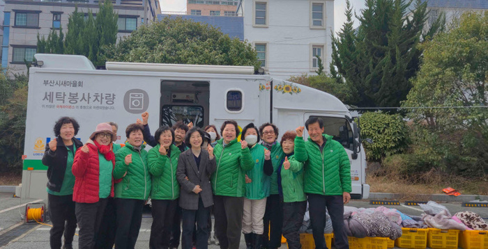 | 기장군 기장읍새마을부녀회에서 취약계층 이불세탁 봉사를 하며 기념촬영을 하고 있다. / 사진 : 부산 기장군 제공 |