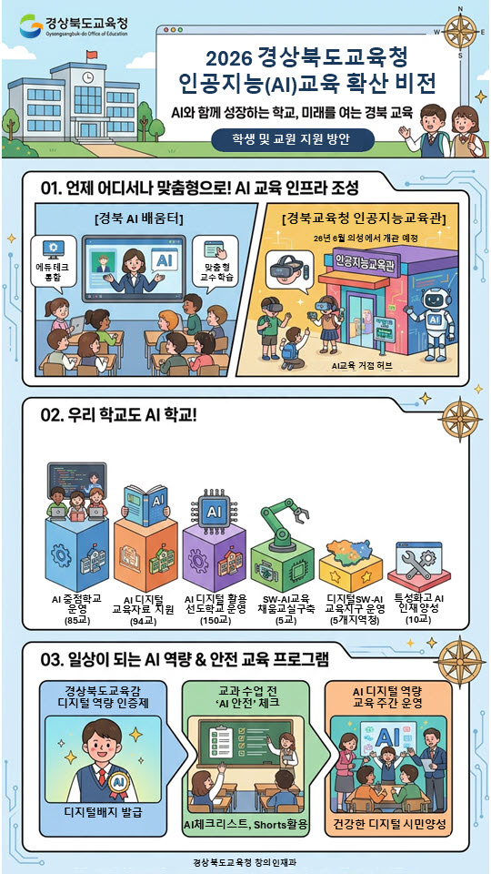 경상북도교육청은 18일 ‘AI와 동행하는 따뜻한 경북교육’을 비전으로 하는 ‘2026 AI(인공지능) 교육 종합계획’을 수립하고 본격 추진한다고 밝혔다.