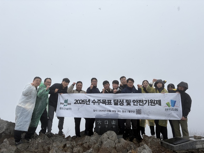 [대한경제=박경남 기자] 동도건설㈜은 18일 인천 강화군 혈구산에서 황영식 대표와 임직원 등이 참가한 가운데 ‘2026년 수주목표 달성 및 안전기원제’를 개최했다.