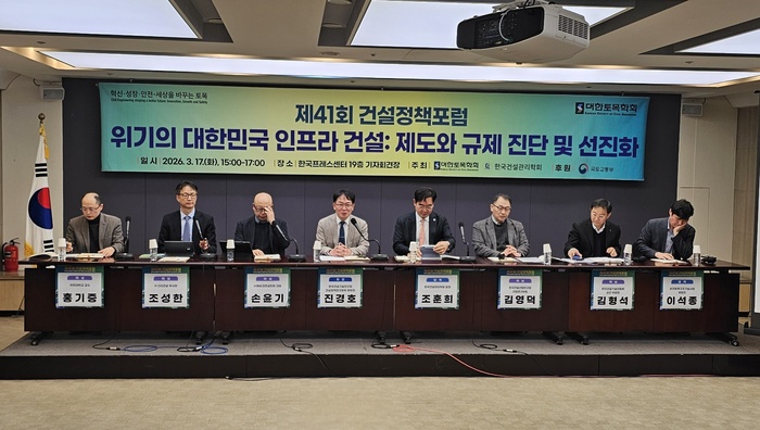 [대한경제=김민수 기자] 대한토목학회(회장 한승헌 연세대 교수)와 한국건설관리학회(회장 조훈희 고려대 교수)는 지난 17일 서울 중구 한국프레스센터에서 ‘제41회 건설정책포럼’(위원장 공정식 고려대 교수)을 성황리에 마무리했다고 18일 밝혔다.