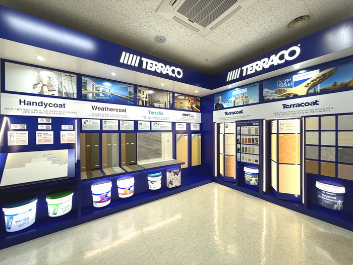 이번에 문을 연 테라코 스페이스에는 테라코코리아의 대표 제품군인 ‘핸디코트’를 비롯해 프리미엄 내ㆍ외부 마감재 ‘테라코트’, 고성능 타일 접착제 제품군 ‘테라픽스’, 유럽 미장 인테리어 마감재 ‘벨로쉬’, ‘테라코 외단열 시스템’ 등 다양한 건축 솔루션을 직접 확인할 수 있다.