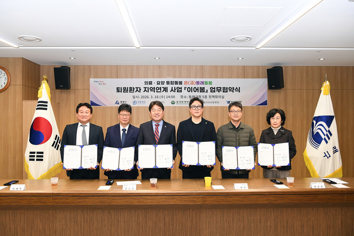 부산 동래구는 지난 18일 관내 종합병원 4개소인 광혜병원(병원장 이재원), 대동병원(병원장 이광재), 동래봉생병원(병원장 조미영), 빌리브세웅병원(병원장 배익현)과 재활의료기관인 워크재활병원(대표원장 김재우)과 함께 대상자 중심의 맞춤형 통합 돌봄 ‘온(溫)동래돌봄’ 사업의 원활한 추진을 위한 협약을 체결했다고 19일 밝혔다.