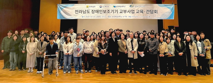 순천제일대학교(총장 성동제)와 전라남도보조기기센터(센터장 이성재)는 20일 교내 소극장에서 '2026년 전라남도 장애인보조기기 교부사업 실무자 교육 및 간담회'를 개최했다.