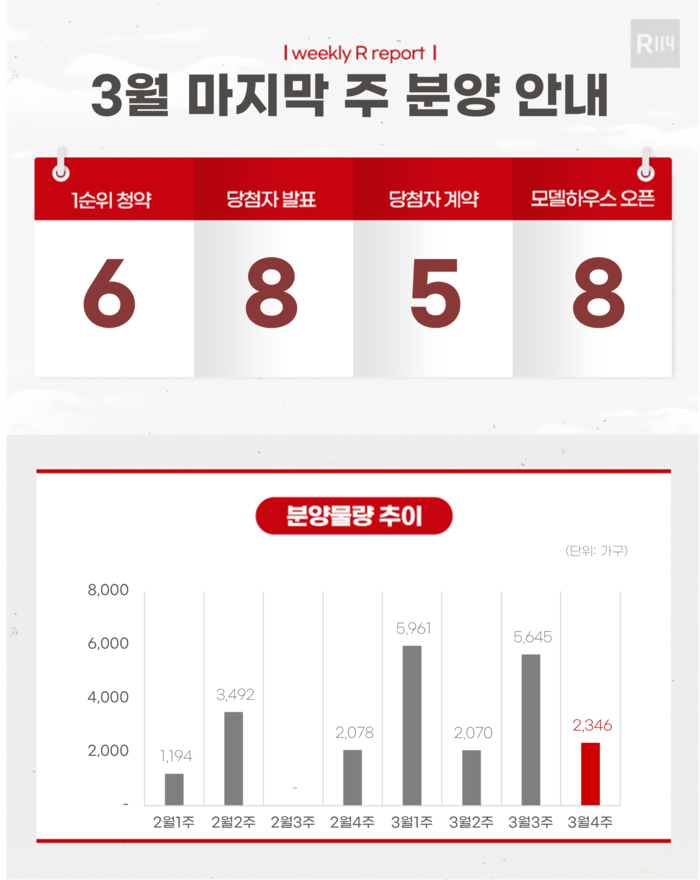 [대한경제=황은우 기자] 3월 마지막 주 전국 분양시장에서 2346가구가 공급된다.