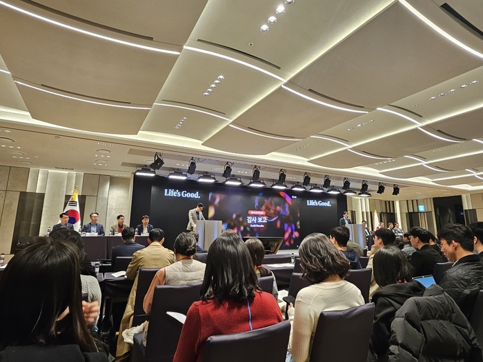 | LG전자 류재철 CEO가 23일 서울 여의도 LG트윈타워에서 열린 제24기 정기 주주총회에서 주주들에서 2026년 전사 사업방향에 대해 설명하고 있다. /사진:LG전자 |