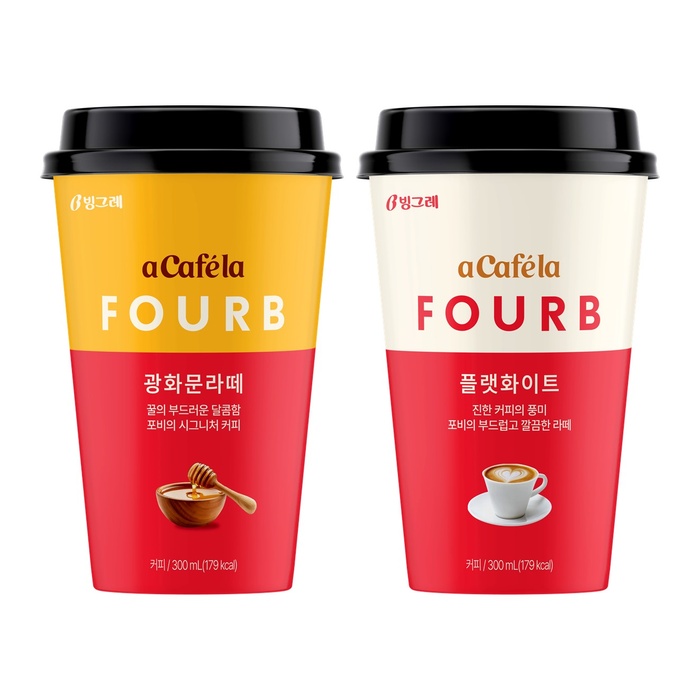 빙그레는 로스터리 카페 브랜드 포비(FOURB)와 ‘아카페라 포비(광화문라떼, 플랫화이트)’ 2종을 선보인다.