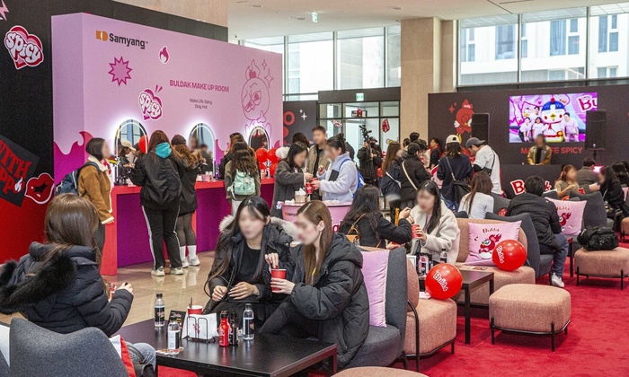 ‘메이크 라이프 스파이시(Make Life Spicy!)’를 주제로 한 이번 팝업은 글로벌 팬과 접점을 확대하기 위한 김정수 부회장의 아이디어에서 시작했다. 팝업에서는 여행 중 재정비할 수 있는 라운지와 파우더룸을 운영하고 무료로 생수를 제공했다. 방문객들은 제품을 시식하는 한편 주변 상권 편의점과 면세점에 진행된 행사에도 참여해 구매로까지 이어졌다.