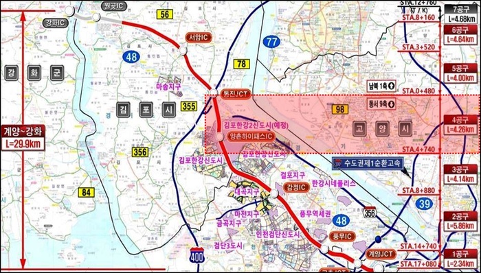 | ‘계양∼강화 고속국도 건설공사(4공구)’ 위치도. / 이미지 : 한국도로공사 제공 |