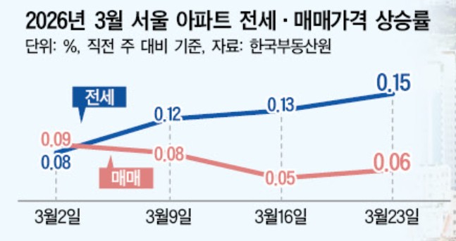 올 1월 말 이재명 대통령이 부동산 세제 압박에 나선 뒤로 전세 물건이 공급될 여지는 더욱 적어졌다.