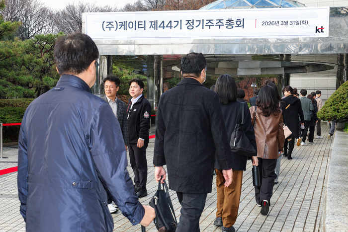 | KT 제44기 정기 주주총회에 참석한 주주들이 주주총회장에 입장하고 있다. /사진:KT |