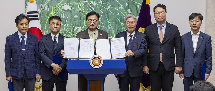 [대한경제=김광호 기자] 우원식 국회의장과 더불어민주당, 조국혁신당, 진보당, 개혁신당, 사회민주당, 기본소득당 등 원내 6개 정당 원내대표는 31일 개헌안 국회 발의를 위한 절차에 공식 착수했다.