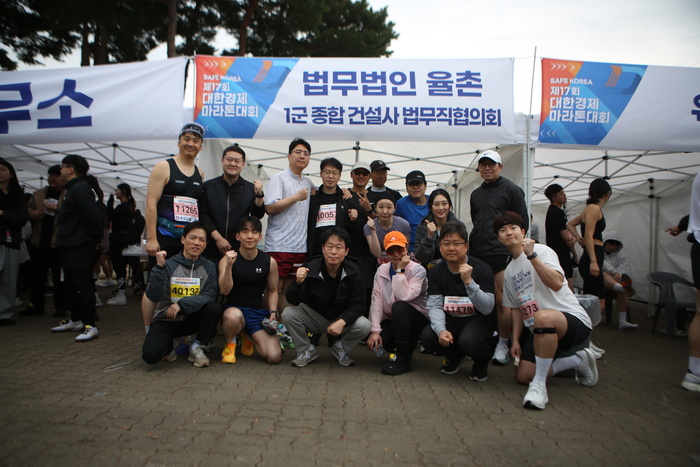 | 국내 1군 종합건설사 법무 담당 실무자들의 모임인 ‘1군 종합건설회사 법무직협의회(건법회)’ 회원 및 법무법인 율촌 임직원들이 대한경제 마라톤 행사에서 기념사진을 촬영하고 있다. / 사진 : 독자 제공 |