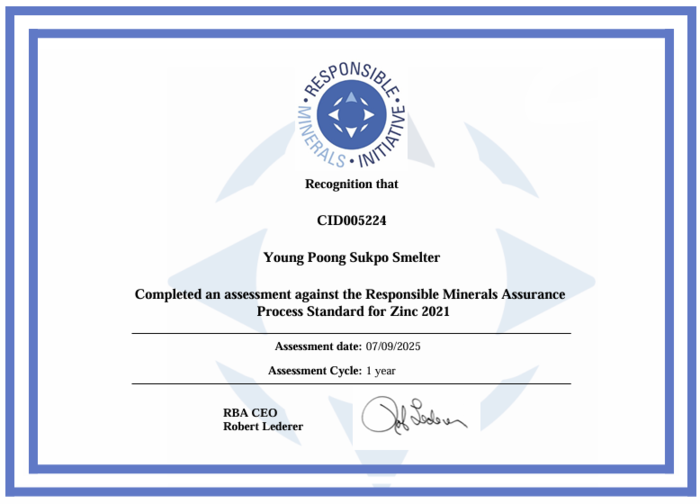 영풍 관계자는 “RMAP 기준에 따라 책임광물 공급망 및 분쟁광물 리스크를 체계적으로 관리하고 있다”며 “글로벌 기준에 부합하는 공급망 관리와 ESG 경영을 지속 강화해 나갈 것”이라고 말했다.