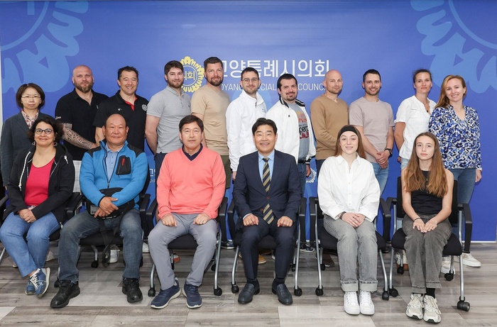 | 프랑스 노르망디 칼바도스 지역에서 태권도 아카데미를 운영하는 관계자들 고양시의회 방문/사진:고양시의회 제공 |