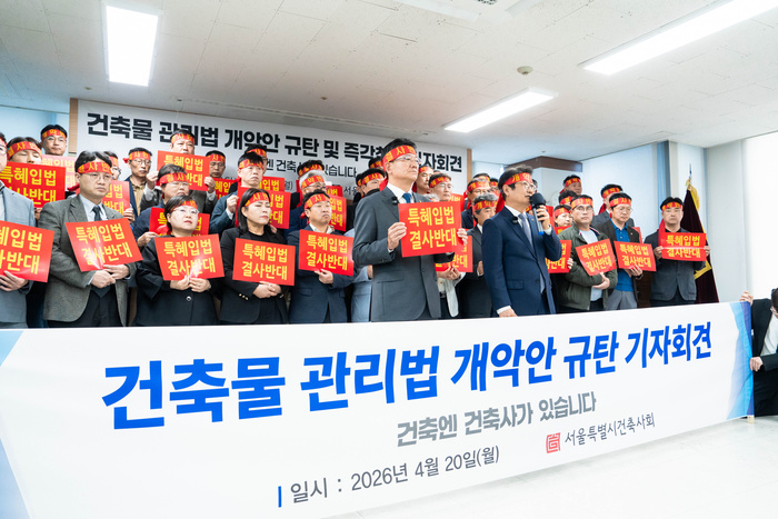 서울특별시건축사회(이하 건축사회)는 20일 기자회견을 열고 국토교통부가 최근 입법예고한 ‘건축물관리법 시행령 및 시행규칙 일부개정안’의 철회를 촉구하고 나섰다.