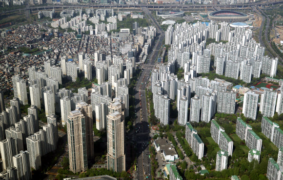 | 서울 송파구 롯데월드타워에서 바라본 아파트 모습./사진:연합 |