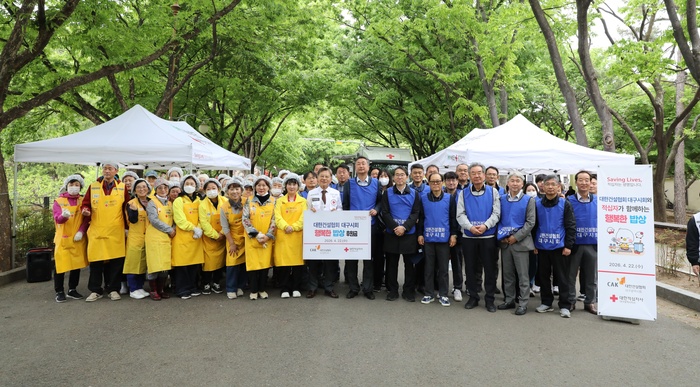 [대한경제=김수정 기자] 대한건설협회 대구광역시회(회장 이승현)는 대구적십자사와 함께 지난 22일 대구 두류공원에서 지역사회 저소득 어르신 및 노숙인 1000여명을 대상으로 ‘행복한 밥상’ 배식 봉사활동을 실시했다.